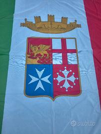 Bandiera italiana con stemma delle 4 Repubbliche Marinare (Venezia, Genova, Amalfi, Pisa). Dimensioni 210x140cm, formato grande da esterno o asta. Tessuto poliestere resistente, stampa nitida e colori vivaci. Piccola cucitura allentata su un angolo, facilmente riparabile. Ottima per eventi, feste nazionali, collezione o arredo. Prezzo fisso €30