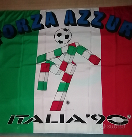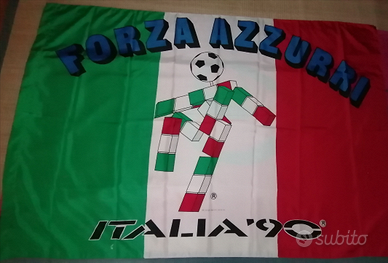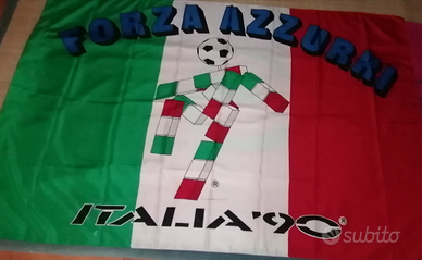 Vendesi bandiera vintage anni '80/'90 dei Mondiali di Calcio Italia' 90 con scritta FORZA AZZURRI, misure 145 x 100 cm, condizioni ottime, rara, mai utilizzata, marca Stendardo di Collegno (TO), no spedizione, solo consegna diretta zona Casello Autostrada Treviso Nord