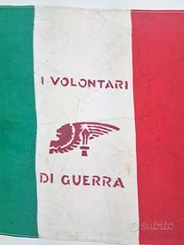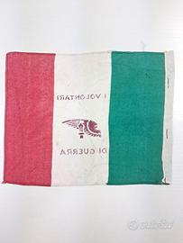 Bandiera tricolore italiana con scritta centrale in rosso:"I VOLONTARI DI GUERRA" Al centro si trova una daga romana simbolo di guerra anni 20/30 L’espressione “Volontari di Guerra” nasce dopo la Grande Guerra (1915-1918) per designare coloro che si erano arruolati spontaneamente, spesso celebrati come eroi patriottici. Negli anni ’20, durante il Fascismo, molte associazioni di reduci e volontari furono riunite sotto organizzazioni ufficiali (ad esempio l’Associazione Nazionale Volontari di Guerra). Caratteristiche: Tricolore italiano (verde, bianco, rosso) - Tessuto leggero, probabilmente cotone stampato - Scritta “I VOLONTARI DI GUERRA” e simbolo una daga romana simbolo di guerra stampati in rosso - Cuciture semplici lungo i bordi Molto probabilmente era un gagliardetto o bandierina commemorativa/associativa utilizzata in parate, raduni o celebrazioni ufficiali dei reduci e volontari di guerra, soprattutto durante eventi pubblici negli anni ’20-’30. dimensioni 23x17,5 cm ben conservato C000013843-39