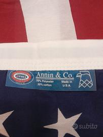 Pezzo da collezione unico: una bandiera degli Stati Uniti d’America originale, prodotta dallo storico marchio Annin & Co., il fornitore ufficiale della Casa Bianca e dell’Apollo 11 (la bandiera sulla Luna è una Annin). Questo esemplare non è una replica commerciale, ma un regalo ufficiale della Nazionale USA di Calcio ricevuto durante i Mondiali di Germania 2006, l’anno dello storico trionfo della nostra Nazionale. - Qualità Museale: Prodotta negli USA con certificazione FMAA. Tessuto ultra-resistente (70% poliestere, 30% cotone) con colori vividi e cuciture rinforzate. - Brand Leggendario: Annin & Co. produce bandiere dal 1847; è lo stesso marchio che ha fornito le bandiere per le cerimonie presidenziali americane e per le missioni NASA. - Cimelio Sportivo: Un ricordo autentico della spedizione americana ai Mondiali 2006, perfetto per collezionisti di memorabilia calcistica o amanti dello stile American/Vintage. - Dimensioni: 125 x 75 cm, dotata di robusti occhielli in ottone per essere appesa o incorniciata. - Condizioni: Eccellenti, pari al nuovo. I colori sono perfettamente conservati e il tessuto non presenta segni di usura.