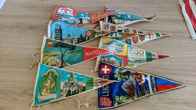 Bandiere e pennant triangolari. Briancon, Lugano, Firenze, Pisa, Vicenza, Genova, Roma olimpiadi 1960, Napoli. Prezzo 50 euro più spese spedizione, gradita consegna a mano.