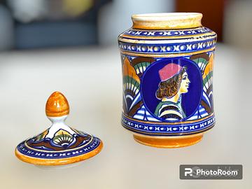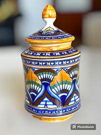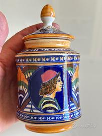BARATTOLO CONTENITORE IN CERAMICA FATTO E DIPINTO A MANO DERUTA Capacity 200g Altezza 12cm Deruta, Umbria, Italy