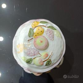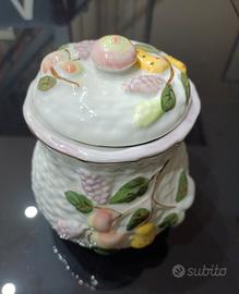 Barattolo contenitore decorato in porcellana, fatto a mano ed in perfette condizioni. Altezza con coperchio 23 cm circa. Bellissimo!