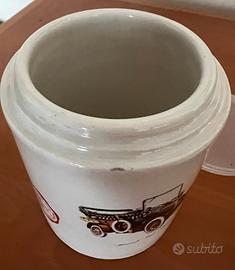 Barattolo Vintage Coronetti pubblicitario. Misure: altezza 11,5 cm; diametro 9 cm.