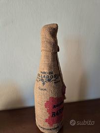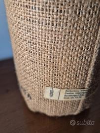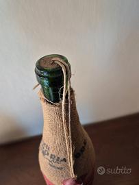 Barbaresco Riserva Speciale avvolta in sacco di Juta originale. Completamente sigillata con ceralacca rossa. Cantina Marchese Villadoria di Serralunga d'Alba.