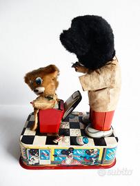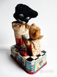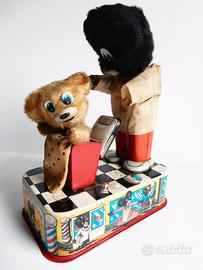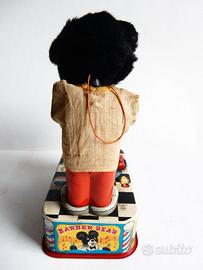 Vendo Barber Bear giocattolo della giapponese Linemar Toys realizzato agli inizi degli anni '50. È in latta litografata con parti in peluche, tessuto e plastica.