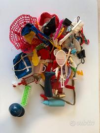 Sei esemplari sono in perfetto stato, una ha il gancio sul collo rotto. In più anche bambola del bambino di Barbie.