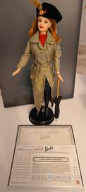 Barbie Autumn in London con un elegante cappotto beige e cappello nero.