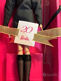 La Barbie Fashion Model Collection commemora il suo 20° anniversario con un'ultima serie che celebra il glamour, la raffinatezza e l'eleganza senza tempo della moda. La Barbie in proposta porta un miniabito nero corvino con eleganti maniche a sbuffo, calze nere trasparenti fino al polpaccio e tacchi a spillo.