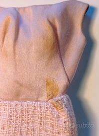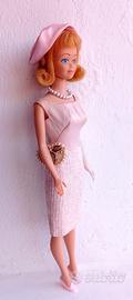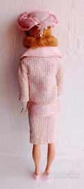Barbie Fashion Luncheon #1656 vintage 1966 -Giacca rosa -Vestito rosa (presenta una leggera macchia nel punto in cui la parte superiore si unisce alla gonna - vedi foto) -Cappello rosa a tesa arrotolata -1 guanto bianco -1 scarpa originale, 2 scarpe di ricambio rosa -Collana di perle -Borsa a mano con perle - 1960 -Gruccia rosa -Bambola venduta separatamente