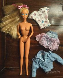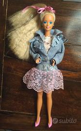 Bellissima Barbie Feeling Fun del 1988 made in Malaysia. Ottime condizioni generali. Capelli puliti e morbidi. Viso e trucco perfetti. Mani, piedi e collo ok. Gambe cliccano bene. Outfit originale in ottime condizioni (solo la maglietta ha un piccolo filo scucito, come da foto). Scarpine abbinate. Per qualsiasi domanda sono a disposizione :)