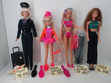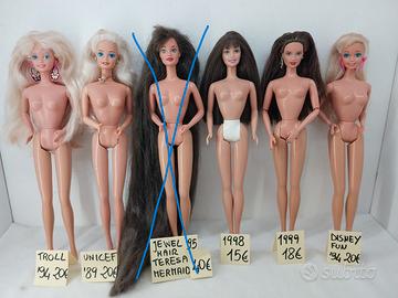 vendo splendide Barbie anni 70,80,90, prezzi in foto. no difetti . Vendute le barrate, la midge beat, la magic moves e la secrets heart. Disponibili Fashion play, school fun , beauty secrets, oriental, e tante altre, ho un album da consultare.