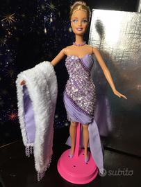 Vendo Barbie ooak da collezione, originale, pezzo unico, di alta sartoria con abito, stola e acconciatura realizzati a mano. Il tubino da sera di raso lilla è completamente ricoperto da paillettes, perline e cristalli in tinta, cuciti a mano uni per uno. Gli stessi cristalli decorano l'elegante ed elaborata acconciatura e la stola.