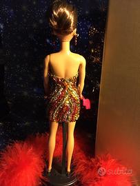 Vendo Barbie ooak da collezione "Happy New Year" , pezzo unico, originale, di alta sartoria con abito, acconciatura e accessori realizzati a mano. In perfetto tema con le feste il luccicante tubino è completamente ricoperto da file alternate di paillettes dorate e argentate fermate da perline rosse e file di cristalli rossi , argentati e dorati. Gli stessi cristalli compongono i tre braccialetti e gli orecchini pendenti. Completano il modello scarpine dorate, una borsetta rossa e un morbido boa di piume rosse. Sono inclusi piedistallo e scatola abbinata. PREZZO NON TRATTABILE. Preferibile ritiro a mano. Spese di spedizione non incluse.