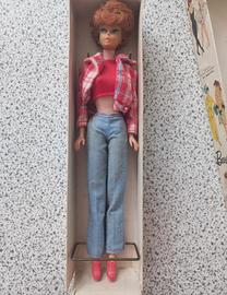 Barbie 1962 Bubblecut red titanium. #850 NELLA SUA CONFEZIONE ORIGINALE Con piedistallo, altri vestiti e borsa. Piccolo difetto orecchio destro leggermente verde, molto comune nelle barbie di quel periodo