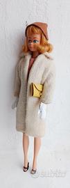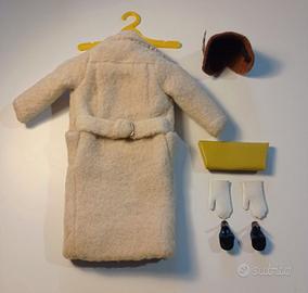 Barbie Peachy Fleecy #915 vintage 1959 -Giacca in pile con cintura -Cappello marrone con piuma e perla -Borsetta color senape -2 guanti bianchi (uno con un piccolo foro) -2 scarpe nere (una con una crepa sulla parte superiore) -Gruccia gialla -Bambola e vestito sotto la giacca venduti separatamente