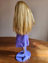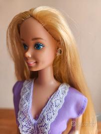 Barbie Pink n Pretty del 1981 usata, orecchini scoloriti, capelli ancora folti, indossa un abito della serie Fashion Fun.