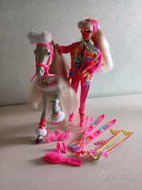 Barbie ski fun completa 1991 + cavallo ski fun blizzard 1991. Manca una staffa e una delle redini è spezzata. Vedi foto lato dx.