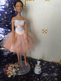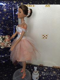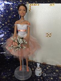 Vendo Barbie ooak da collezione "Fiori d'arancio" , pezzo unico, originale, di alta sartoria con abito e acconciatura realizzati a mano. L'abito corto ha il corpino in raso e pizzo bianco ed un nastrino di raso pesca e la gonna a ruota composta da tulle, raso pesca e petali di tulle e voile bianco e pesca. Perline e cristalli bianchi e pesca decorano la scollatura, il bordo del corpino e compongono anche la collana. Rose bianche e pesca impreziosiscono l'elegante acconciatura e il bouquet abbinato. Sono inclusi scarpine pesca, una piccola torta nuziale, piedistallo e scatola abbinata. PREZZO NON TRATTABILE. Preferibile ritiro a mano. Spese di spedizione non incluse.