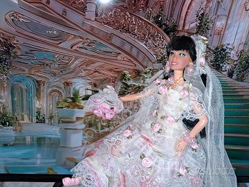 Barbie Sposa Rosa Benvenuti a questo giorno speciale, dove celebriamo l'amore e l'unione della Sposa Rosa Oggi, ci immergeremo in un mondo incantato, ispirato alla dolcezza e alla gioia di Barbie, con un tocco di rosa che rappresenta la bellezza e l'amore eterno la sposa, in un abito elegante in tulle con pizzo e ornata di rose con il suo velo bianco lungo con rose, farà il suo ingresso accompagnata da una melodia dolce e romantica, simile a una favola. sempre piena di gioia, avventure e momenti indimenticabili, proprio come nel mondo di Barbie.