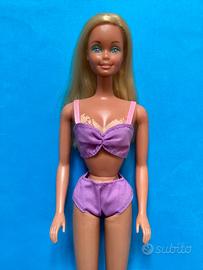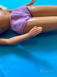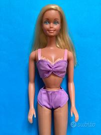 Barbie SunLovin Malibu 1978 edizioni originale Taiwan in Eccellenti condizioni una mano ha un leggerissimo striscettino superficiale Assicuro dal vero neanche si nota, come in foto piedi perfetti ginocchia cliccano, una morbida ma tiene le posizioni capelli come nuovi non mancano ciocche abbinato set lingerie non l’ho identificato ma originale Mattel perfetto. Tutto è pulito.