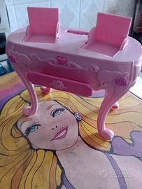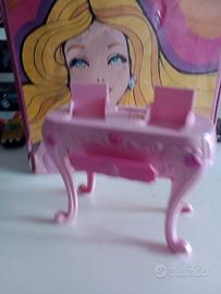 Barbie toilette trucco con 3 cassettini di cui 2 a scomparsa sulla base d'appoggio - Mattel anno 2005, mancante di specchio.
