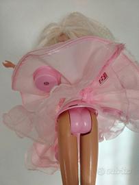 Barbie twirlin make-up versione europea, Mattel 1994, abito rosa con glitter e pietre preziose. Manca l'anello e le scarpe, che ho sostituito con delle altre. In ottime condizioni. Consegna anche a mano nei pressi di Ancona.