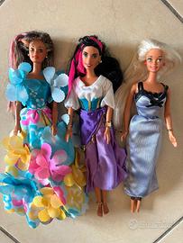 Bambole tipo Barbie vintage in ottime condizioni. Abiti inclusi come da foto Capelli in buono stato Ideali per collezionisti 👗 sinistra: Barbie anni ‘90 con vestito floreale 20€ 🟣 centro: stile Esmeralda 25€ ✨ destra: Barbie elegante anni ‘90/2000 19€