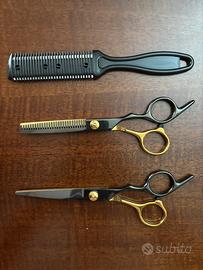 nuove mai usate forbici taglienti per uso personale/professionale insieme ad in regalo uno sfilzino per capelli, 4 pinze, un pettine