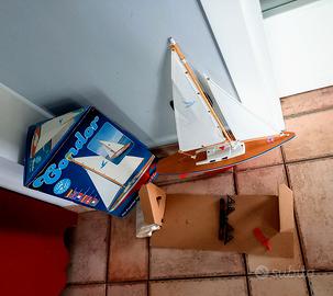 nuova di negozio in legno con vele in stoffa con cordicine come l'originale giocabile ma bella anche da vetrina con istruzioni come fissare e legare le vele. Germany 1981 altezza 58 cm