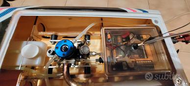 vendo modello professionale da gara in vetroresina lunga 85 cm motore nitro 2.5cc meccanica in ergal velocissima e stabile...fatto un serbatoio di rodaggio...vendo con elettronica completa.... radio Jr professionale....Bellissimo modello la vendo xe dove la uso do fastidio e quindi ho altre due Elettriche vendo senza scatola.la barca a 10.minuti di vita quindi la vendo x nuova