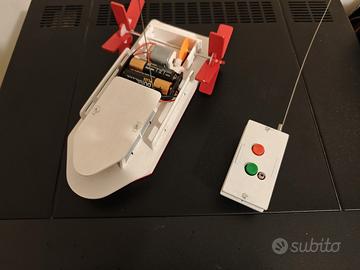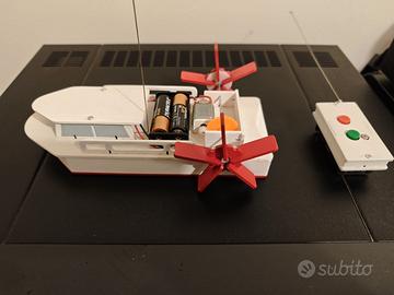Barca fluviale a pale; giocattolo radiocomandato con la funzione avanti / indietro. batterie non incluse. Non impossibile da spedire ma dovrei smontarlo parzialmente per via delle antenne; facile da rimontare. preferisco la consegna a mano.