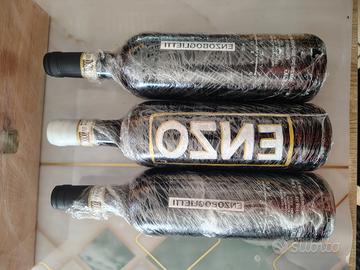 Lotto composto da 3 bottiglie appartenenti a serie limitata, con etichetta della bottiglia centrale disegnata a mano dallo stesso Enzo Boglietti, complete di cassa in legno originale firmata dal produttore.