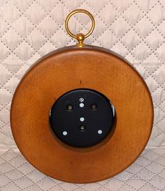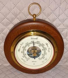 Barometro analogico da parete di marca “Altitude” (Made in Denmark by Delite) su base di massello di legno tipo noce. Dimensioni: diametro 11 cm (base 17 cm), spessore totale 4,5 cm: peso 580 g, con confezione 742 g.