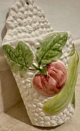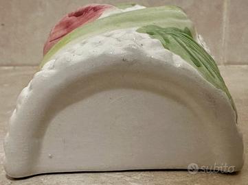 Bellissimo portaspezie in ceramica decorato a mano della ditta barrettoni. Il portaspezie e' nuovo si trova in ottimo stato. Ha altezza 16 cm, lunghezza Max 7 cm e larghezza Max 4 cm. Sarà accuratamente imballato e spedito.