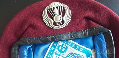 Basco vintage originale di produzione italiana Boina ex dotazione Paracadutisti Brigata Folgore, periodo presumibilmente fine anni '70. Mai usato, condizioni molto buone con minimi segni del lungo immagazzinaggio, è caratterizzato da un taglio tipico francese tipo Legione come era in voga in quel periodo (era preceduto dai Canadian e sarà seguito dai Boina ma con taglio molto ridotto tipico spagnolo). Taglia riportata 54. Pezzo introvabile.
