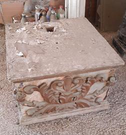Questo basamento rialzato modello cassettone da utilizzo come alzata per sculture busti di pregio artistiche oppure come base per figure e statue sacre religiose di santi chiese e personaggi di culto.