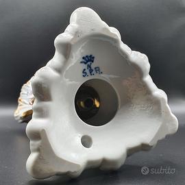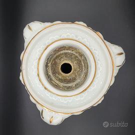 Pregiata base per lampada assemblata e composta da numero due elementi in porcellana bordata in oro zecchino a firma Napoleon Capodimonte.