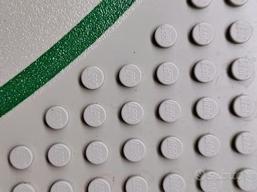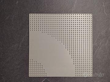 Vendo piastra base stradale LEGO originale vintage, di colore grigio chiaro, dimensione 32x32 studs, con configurazione a curva e bordi verdi (come da foto).