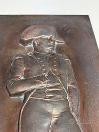 bassorilievo, cm. 33x14,5, firmato in basso a sinistra dallo ultore e medagliere francese che ritrae Napoleone in piedi in iforme con cappello a tre punte e la mano nel panciotto, tratto una pittura di Isabey. Bella patina, opera probabilmente alente alla fine degli anni Trenta. Peso gr. 850. burchi