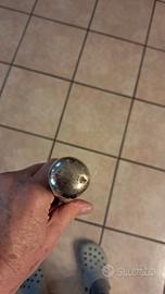 bastone antico con pomello in metallo, non credo argento perché non vedo i punzoni,asta in legno molto duro e robusto,senza puntale