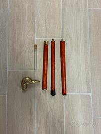 Bastone da passeggio vintage scomponibile in tre pezzi con impugnatura a forma di anatra in ottone.
