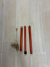 Bastone da passeggio vintage divisibile in tre pezzi con impugnatura a forma di cane in ottone. Mai usato.