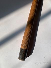 Antico bastione da passeggio in legno con impugnatura in avorio e punta in metallo, francia XIX secolo. Lunghezza 103, spessore pomolo 5 cm