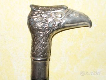 Vendo antico bastone da passeggio con impugnatura in peltro a forma di testa d'aquila