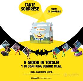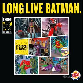 Collezione di 8 giochi (5 personaggi e 3 mezzi) per festeggiare gli 80 anni di Batman che si potevano trovare nei Menù Bambino di Burger King nell'anno 2019.