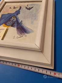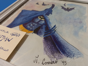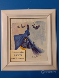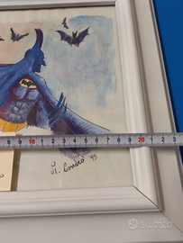 In una cornice vintage un Batman realizzato con acquerelli e pastelli dal maestro Condrò cm.20x23 + cornice cm. 30x33 Pezzo unico del '95