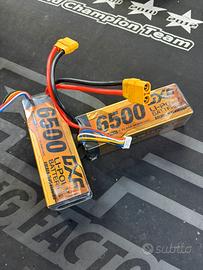 Vendo coppia di batterie lipo dxf 6500mAh 2 scariche all’attivo dopo 2 scariche di rodaggio. Storate a fine utilizzo. Batterie lipo modellismo rc offorad onroad buggy 1/8 1/10 touring gt