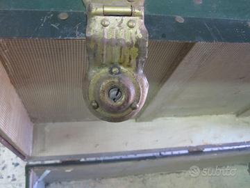 Baule antico da viaggio in legno e pelle verde vintage anni '30/'40 cassapanca