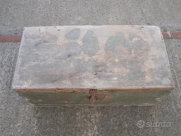 Baule antico in legno cassa vintage cassapanca forziere scrigno arredamento